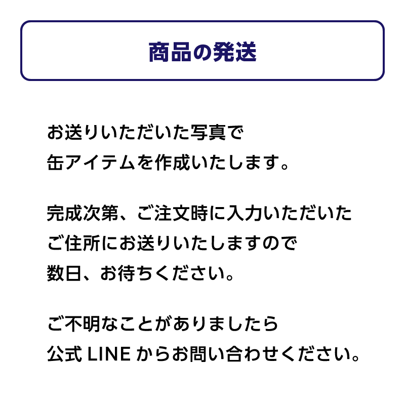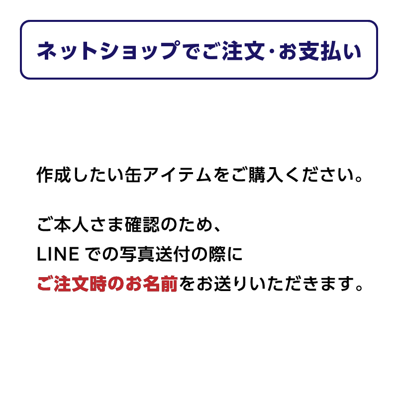 LINEからお持ちの写真をお送りいただくと、オリジナルの名入れ缶アイテムを作成できます。