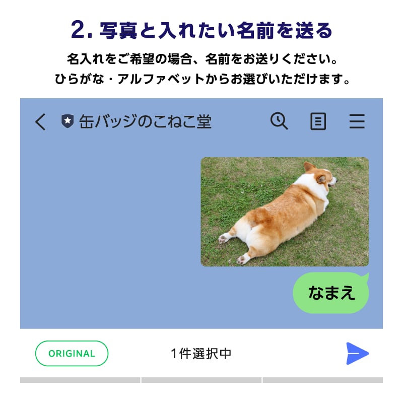 (3)「写真」と「入れたい名前」をお送りください